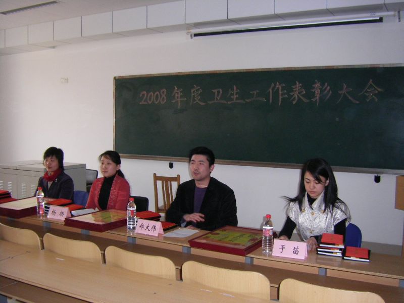 在Y201召开2008年度卫生工作会议暨2007年度卫生表彰大会。党总支杨扬副书记以及全体辅导员老师参加了此次会议。
