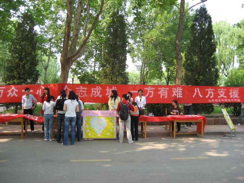 联合山东电视台公共频道新闻女生组在本部榕园举办了为灾区人民募捐的活动。注册送彩金