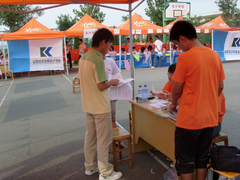 报名工作于中午十二点正式开始,为上好大学第一课,整个报名工作由新生独立完成。报名入口处设有党员服务站,为新生解答档案转移、预备党员转正工作中存在的各种问题。同时,质点通讯社的工作人员在出口处向新生发放宣传材料及入学指南,热情的帮助新生尽快了解山经。另外,引导员、解说员在场地入口周围及宣传板处耐心引导同学报名,详细介绍注册送彩金 情况,为新生解答有关入住宿舍,以及日常生活等方面的疑惑,帮助新生更快更好地适应大学生活。一位迎新工作人员告诉我们:能够为学弟学妹们服务,即使再热再累也很值得。