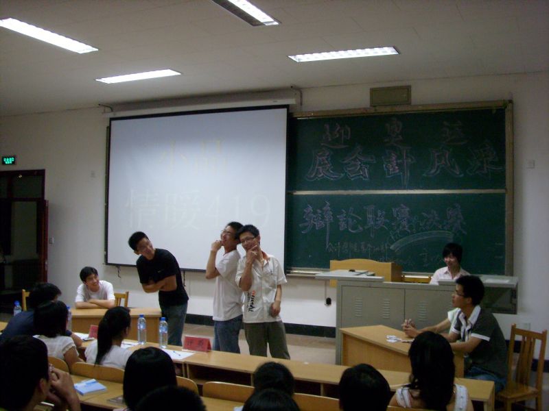 “迎奥运 展会计风采”辩论联赛决赛暨闭幕式于5月24日晚7点在明水校区3217教室举行。本次活动分为表演赛和决赛,中间还穿插了众多精彩节目。