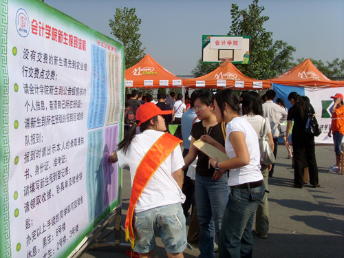 迎来了2008级的600多名新生。九月的济南依然骄阳似火,但这丝毫不影响志愿者的热情。在迎新工作中,他们聚在一起用行动诠释“真情”二字,从帮助新生办理手续到解答各种疑问,从维护现场秩序到积极引导新生,从分发指导材料到热情的搬运行李,整个迎新工作井然有序。