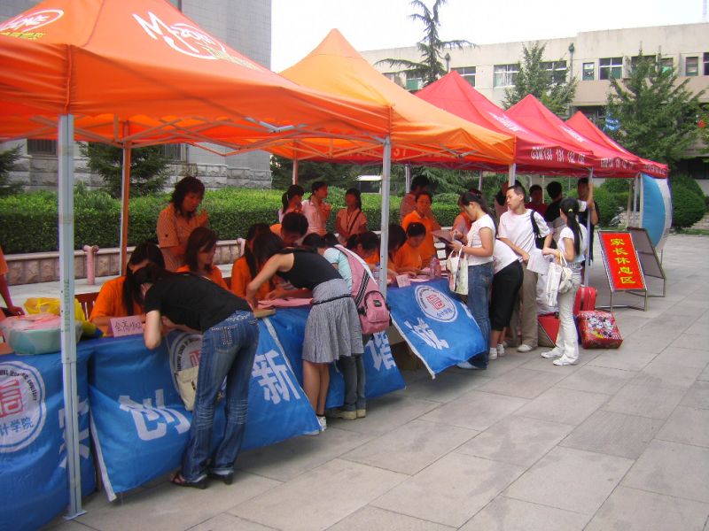 迎新工作采取一站式服务,遵循严谨的工作流程。接站员、引导员、注册人员、后勤服务人员等已在自己的岗位上准备完毕。“诚信”、“和谐”、“务实”、“创新”四面锦旗飘扬在最显眼的位置,在体现注册送彩金 学习宗旨的同时为新生们树立正确的成长目标。