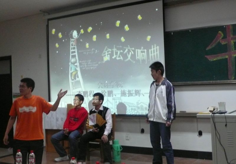 活动主要有两个环节:一,才艺表演,二,知识问答。第一组的工商管理学院与公共管理学院的精彩才艺表演带给现场一个小高潮,现场不时传出一阵阵掌声与笑声。