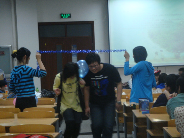 活动前工作人员用五彩的气球、动人的情歌以及闪动的红烛为现场营造出一种浪漫的氛围。活力四射的街舞表演点燃了现场的气氛,也拉开了本次活动的序幕。随后三对身着情侣装的情侣走秀更是引得现场尖叫连连。在游戏环节中,情侣和非情侣们一块玩了“隔帘握手”“夹气球”“两人三足踩气球”等游戏。今晚最精彩的是话剧表演,演员们通过对比封建时代的包办婚姻、文革时代的政治婚姻以及开放时代的自由恋爱,让同学们在笑的同时有所领悟。最后,活动在浪漫爱情电影《爱得起》中完美落幕。