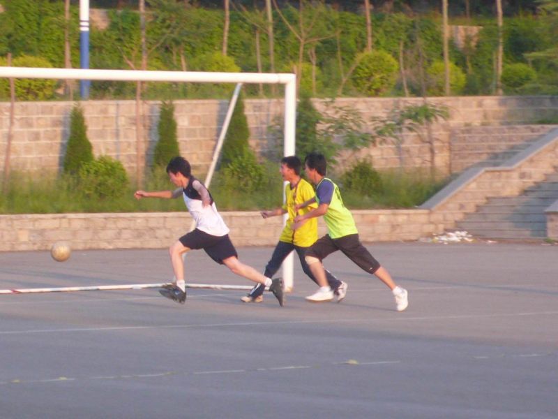 5月31日下午明水校区小足球场上,一场激烈的决赛正在上演,对阵双方是会1会5联队与会3会4联队。