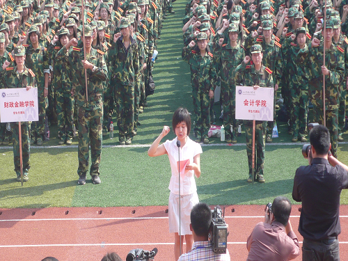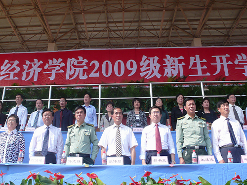金秋送爽,丹桂飘香,在这果实累累的季节里,经过前期的精心准备, 2009年 9月 25日上午,山东经济学院2009级新生开学典礼在明水校区田径场隆重举行。此次大会由山东经济学院副院长崔有平教授主持,党委书记张体勤教授,院长郝书辰教授,人民武装学院校长许志强大校,山东经济学院党委副书记刘清乐教授、牟思伦教授,以及山东经济学院各学院领导、老师、教师、学生代表及 2009级全体新生参加了大会。