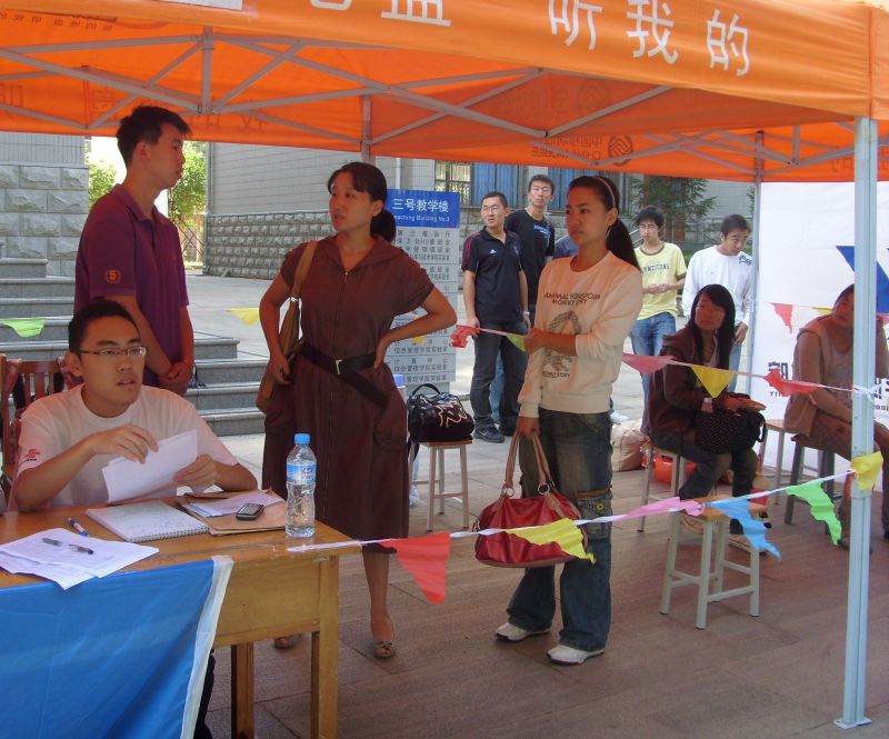 12日中午,新生报到开始。注册送彩金 党、团总支高度重视甲型H1N1流感的防控工作,每位同学和家长都会收到一份题为《提高健康知识,预防甲型H1N1流感》的宣传材料。在进入报到场地前,首先要进行体温测试。注册送彩金 派专门人员负责对每一位新生体温进行检测并登记,体温正常者方可进入场地报到。随后,各位新生在相关工作人员带领下查看自己的分班情况,确认完毕后去各班负责人处进行报到。各班负责人确认新生信息后收取录取通知书,发放饭卡,安排宿舍,最后学生会派专人负责帮新生搬运行李并将他们送到宿舍。