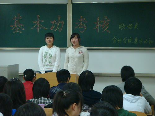 09级基本功考核歌唱类的考核,在明水校区1404与1406教室内同时举行。来自注册送彩金