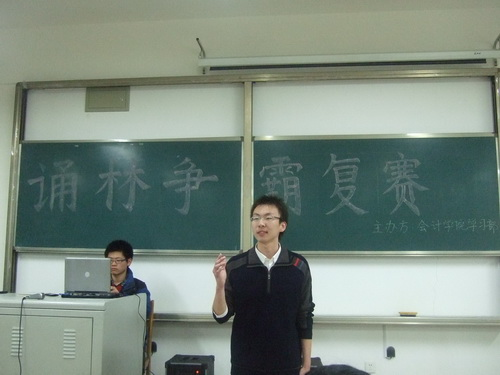 学习部主办的第八届“诵林争霸赛”复赛第一场在明水校区1306教室举行。担任此次复赛评委的是:注册送彩金