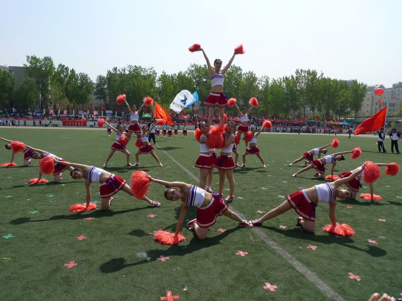 运动会比赛的间隙,啦啦队员们为大家带来了激情动感的表演。啦啦操队形整齐,动作一致,或优美或有力的舞姿不仅体现了同学们的年轻奋发的活力,更展现出注册送彩金 学生坚持不懈的精神.