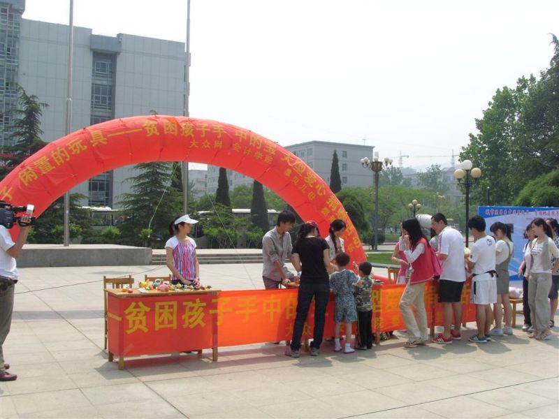 的学生们在学校喷泉广场特意举行了“爱心玩具总动员”山经站捐赠仪式,活动现场吸引了众多学生和老师的参与。