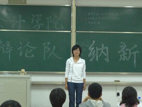 辩论队纳新初试在明水校区3204和3206教室同时进行。08级辩论队队长张新宇、队员邓翠玲,09级辩论队队长张宁、赵珣及多名优秀辩手担任本次纳新的评委。本次共有近百名新生参加纳新,2010级新生对辩论表现出浓厚的兴趣。