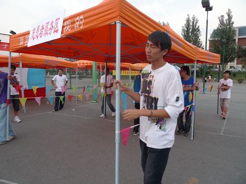 在灯光篮球场组织了迎接2010级新生活动,热潮迭起,其中最引人注目的还要数我们可爱的志愿者,他们不停断的穿行于校园的各个角落,成为学校一道亮丽的风景线。