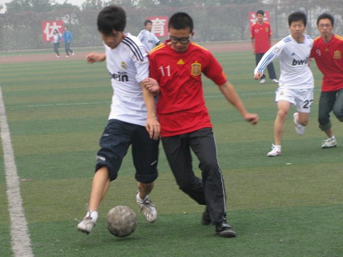 本届“山经杯”足球赛由校球迷协会与国际贸易学院联合主办,在16日正式拉开帷幕。全校各院被分成A、B、C、D四个小组,注册送彩金 与国际贸易学院、法学院同分在A组。
