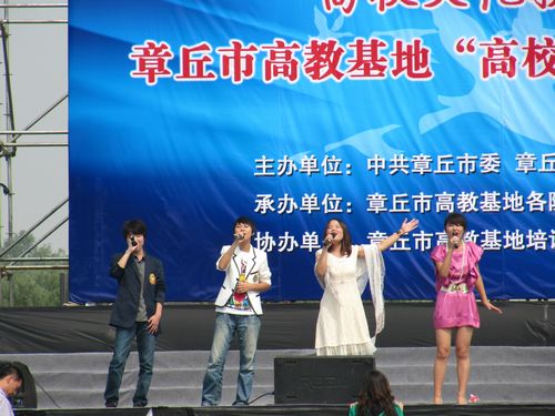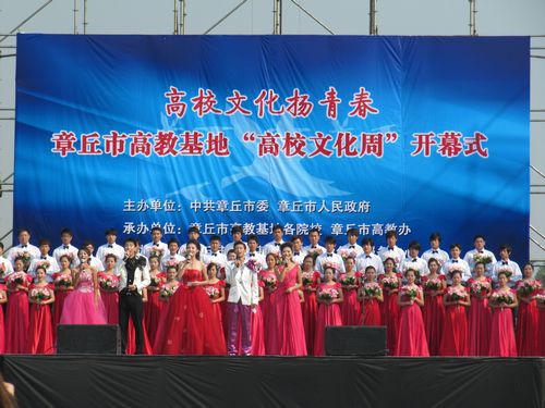 开幕式由中共章丘市委、章丘市人民政府共同主办,旨在推动高校健康稳步发展,提高章丘市文化软实力。近九点,同学们纷纷到达演出场地。现场可谓是人山人海,汇集了来自章丘市高教基地各大学的学子,俨然成了一片学生的海洋。