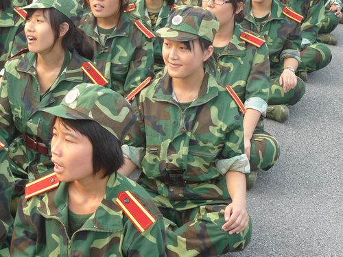 今天凉爽多云的天气为同学们的训练提供了不少便利,绿茵茵的草地和迷彩军装相互辉映,让同学们显得活力十足。军官们严格要求新生整理军容和端正军姿,不时亲自示范,并手把手纠正基本的动作,会计新生在英姿飒爽的军官的带领下认真训练,丝毫没有半点偷懒。