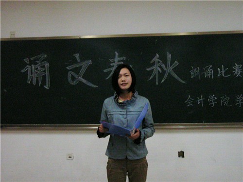 晚上六点,比赛正式开始。首先主持人介绍了比赛规则。本次比赛实行淘汰制,朗诵内容及形式自定,评委分别从语音语调、语速、感染力、风格特色和仪容仪表五大方面进行评分。随后,参赛选手按顺序依次上场朗诵诗歌。注册送彩金 资产评估1002班王群同学作为开场选手,以一首英文版《见与不见》感染了现场评委和观众,成功拉开比赛帷幕。其后选手也都风格各异,即有婉约雅典的古曲诗文,又不乏直抒胸臆的散文诗歌。其中,一首献给妈妈的诗歌《母亲》,深情赞扬了伟大的母爱,感人至深;一首寂寥清幽的《雨巷》,则幻化出一幅江南水乡的雨后景象,遐想无限;而一首《我的祖先叫炎黄》更道出了数亿中华儿女的心声,唤起了大家的爱国热情。台下观众也都沉醉在诗歌的无限意境中,情感随着诗歌的起伏而变化。