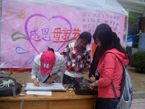 “母亲”本是个平凡的词语,但母亲永远是平凡中见伟大的人物。她赐予我们生命,含辛茹苦将我们抚育成人。斑白了黑发,燃尽了青春。5月8日,又到了一年一度的母亲节。注册送彩金 承然环保协会特别推出感恩母亲节活动,希望可以借此为大家提供一个向母亲说出我们心中之爱的平台。活动参加方式很简单,同学们只需在留言板上写下想对母亲说的话,并与留言板合照留影即可。温馨的展板吸引了来往同学,大家纷纷拿起笔,写下埋藏已久的心里话。有质朴的“妈妈您辛苦了,节日快乐”;也有浪漫的“您是一棵大树,春天倚着您幻想,夏天倚着您繁茂,秋天倚着您成熟,东西倚着您沉思,我爱你妈妈”;更有诙谐的“我若是大款,您就是大款的妈妈;我若是总统,您就是总统的妈妈。不管将来儿子是什么,我都永远爱您。”一个小小的留言板,写不尽大家对妈妈千言万语的感恩与思念。据悉,此次活动将持续两天,5月7日下午,由承然环保协会成员评出30份优秀作品。获奖作品,协会将免费为大家邮寄回家。