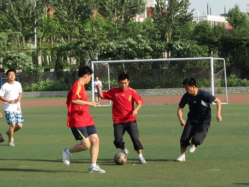 社团部与足球协会联合主办的“会计杯”足球赛半决赛在明水校区操场准时进行。半决赛先后分为两场,第一场由09会计一班和二班对阵09会计三班和四班;第二场则是由10会计四五六班对阵10财管四个班。