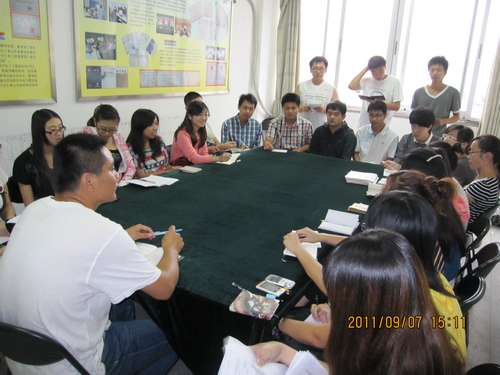 9月7日,在学院小会议室举办了学生干部工作经验交流会,2008级同学重点介绍了舜耕校区的情况,传授了学习经验,进行了现场答疑, 受到09级同学的热烈欢迎,他们纷纷表示收获很大,受益匪浅。经验交流为2009级同学迅速适应环境,尽快使学习和生活步入正常轨道提供了帮助。会上,大家畅所欲言,现场气氛活跃。