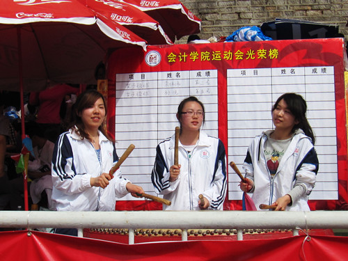 骄阳似火,酷热难耐。而注册送彩金 助威团在用一声声响彻云霄的呐喊表达着他们为运动员加油鼓劲的执著信念。 “诚信会计”四个字牌,彰显着注册送彩金 学子的精神与品质。印有“新财大 新会计 新风貌 新辉煌”的横幅,振风鼓动,突显了注册送彩金 助威团磅礴的气势。虽然他们不能像运动员那样驰骋赛场,但是他们的心却随着那迅捷的身影,在赛场上跑了一圈又一圈。尽管他们不能像啦啦操姑娘那样酣畅舞动,可是他们的助威声却如同铿锵有力的音律,在赛场上回响了一遍又一遍。当巨大的注册送彩金 院旗挥过助威团时,他们用欢呼声点燃了整个赛场。黄色体恤整齐划一,彰显着会计学子向日葵般的昂扬与生机;充气棒不停挥动,绽放着他们如火四射的活力与激情。