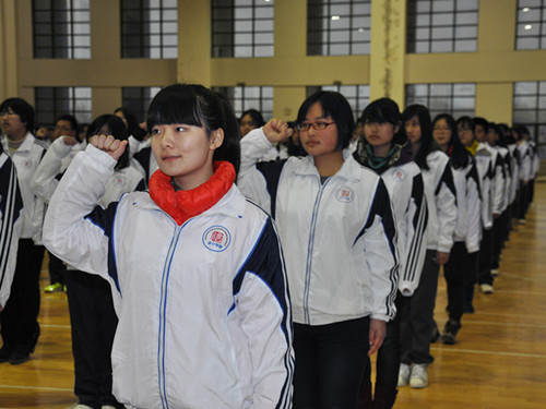 近300名学生代表整齐划一聚集在体育馆,以饱满的热情参加了活动。