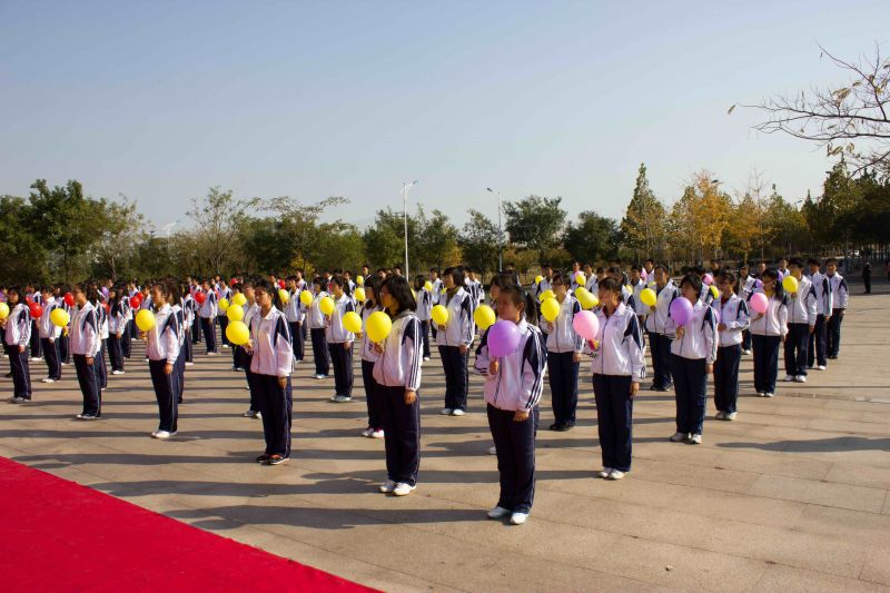 学生们放飞象征祝福的气球