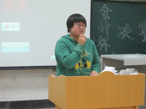 在比赛过程中,评委针对辩手在开篇立论、质询、质询小结、自由辩论、总结陈辞、团队配合及临场反应六个方面的表现进行打分,最终,会计1201班代表队以平均分79分的成绩夺得本次比赛的冠军,财务管理1203班和会计1208班分别获得亚军和季军,同时王翊飞、王春萌、朱慧敏等六位同学因出色的表现获得最佳辩手称号。最后,注册送彩金 辩论队2010级领队为获奖班级和同学颁发证书,至此,本届“会计杯”新生班级辩论赛圆满落下帷幕。