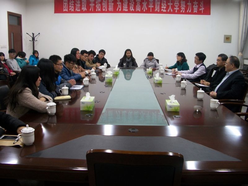 晚六点钟,座谈会正式开始。首先,刘兴云书记风趣地打破了会场的沉默,亲切地与同学们展开互动,他真诚地表示:“作为一名35年前从注册送彩金 走出去的学生,我对注册送彩金 有着特殊的情结和深厚的感情,今天的座谈会上,我不仅是一位校领导,更是大家的一位师兄,一位朋友。希望同学们畅所欲言,我们一起交流,一起学习。”从刘书记真挚的话语中,同学们深深地体会到他的平易近人,以及对同学们的关怀与爱护。在书记的鼓励下,同学们纷纷畅所欲言,谈自己来到山财大后的体会和感受。来自新疆的维吾尔族学生尼哈提说:“虽然我来自遥远的新疆,但这里老师的关心,同学的友爱以及宿舍的和谐氛围都让我深深体会到了山东朋友的热情好客,我喜欢这里。”会计1404班张瑜同学谈到:“刚开始来到大学时的确经历了一段迷茫期,不知道自己应该做什么,能做什么。但是随着时间的流逝,在紧张的课程和学生会工作中逐渐找到了方向,感觉进入大学更踏实了,而自己也在慢慢的适应这种大学生活。”安炳文、等同学表示,自己进入大学后参与了自己喜欢的社团,拓宽视野,增长了见识,提升了眼界,生活也变得充实。刘书记认真倾听同学们对大学的体会,他微笑着启发大家:“步入大学,我们要明白大学和中学的不同之处。大学中学习的不仅仅是知识,更多的是学习的方法,思考的方法,适应社会的方法和能力;大学里注重的是提高,自身能力的提高,个人素养的提高以及知识水平的提高。而这些都需要我们通过刻苦学习、积极实践、参与活动、与老师同学加强交流等慢慢体会,慢慢学习。”