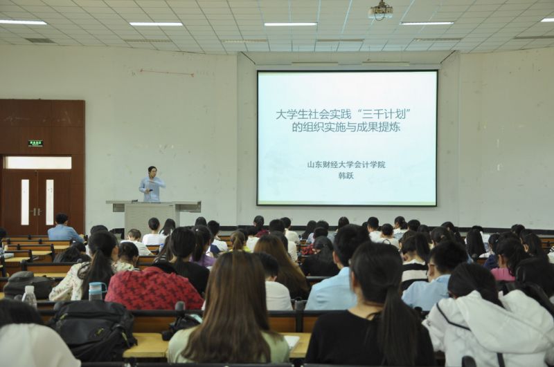 韩跃老师表示,“三千计划”社会实践活动看似离同学们的生活很遥远,可实则离大家很近。同学们可以在开展社会实践的过程中获得多方面的能力,如与人沟通的能力、规划生活的能力和团队配合的技巧等等。同时,社会实践所培养出的待人接物的从容、稳重的气质,对同学们以后的就业和工作也极为有利,便于他们在竞争中脱颖而出。本次座谈会韩跃老师大致从选题立项、调研计划、团队协作与分工、社会资源的联系与沟通、书写调研报告五个方面就如何有效开展“三千计划”做了具体阐述。并以自己曾在2015暑期实践活动中所带省级优秀团队——周晓坤团队为例向大家讲述了在开展活动过程中遇到的可能问题和应对措施。