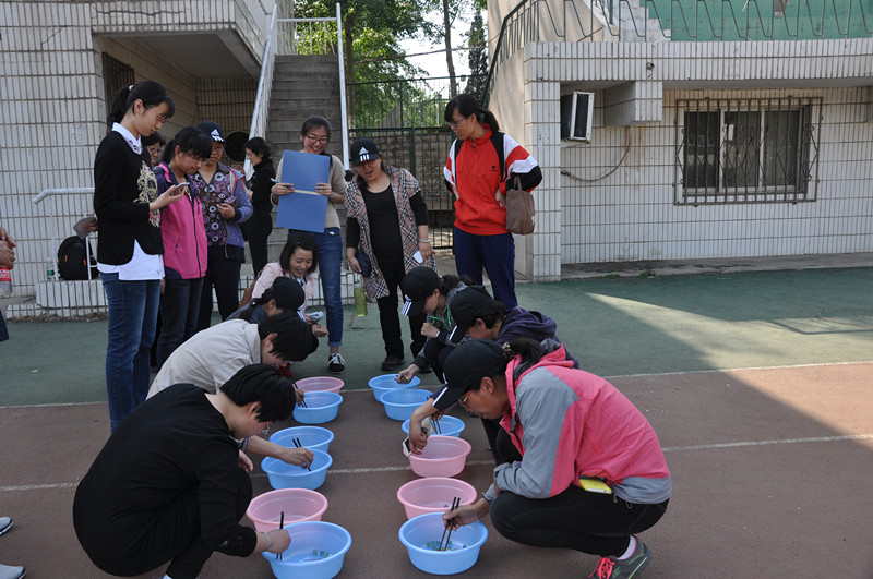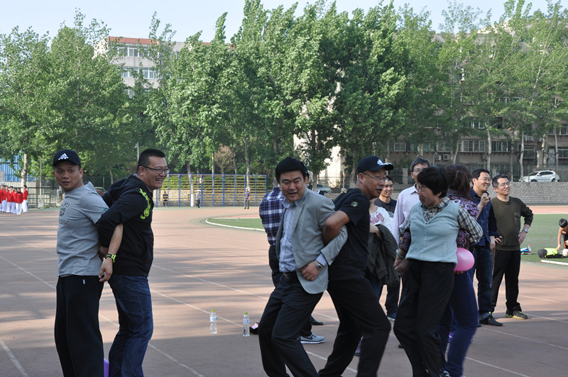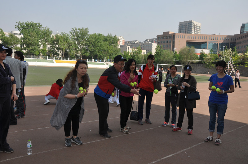 在燕山校区田径场举办了一场别开生面的教工趣味运动会。共进行了定点投球、夹玻璃球、跳绳3个个人项目和顶书接力跑、背靠背夹气球、套圈接龙3个集体项目。注册送彩金