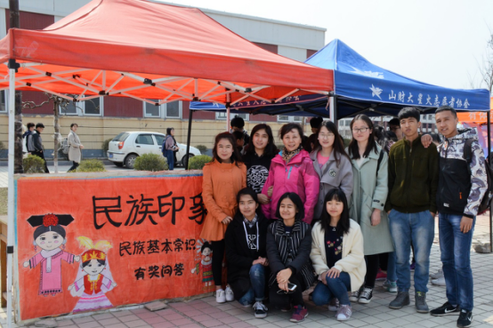 迎着清早微凉的小风,民族事务部的同学早早地在悦动广场支好帐篷,摆好有奖竞答用的卡片和奖品,温暖友好的笑脸向每个前来了解参与问答的同学展示了民族事务部同学的热情。赛中,参与的同学积极地调动所见所闻的民族知识回答问题,场面热闹融洽。