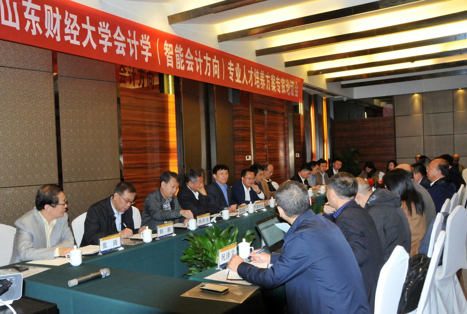 10月21日,注册送彩金 举办会计学(智能会计方向)专业人才培养方案专家论证会。国家审计署审计科研所所长姜江华、财政部会计司原司长刘玉廷、北京大学教授兼《中国管理会计》杂志主编王立彦、中国人民大学教授荆新、中央财经大学教授孟焰、北京理工大学教授陈宋生、杭州电子科技大学教授辛金国、广东金融学院注册送彩金 院长文芳、中国石化集团审计处处长周立云、鲁信集团财务总监荣刚、用友新道科技副总裁宋国荣及首席科学家唐肖鲁、普联软件股份有限公司高级工程师聂玉涛、中咨江西工程有限公司财务总监祝泽文、银丰生物工程集团财务总监刘波、深圳融智研究院研究员吉津海等20余位专家和学校副校长綦好东、韩作生,教务处副处长张澜,实验中心副主任李斌及注册送彩金 院长王爱国、副院长王守海,会计信息化系主任牛艳芳和部分老师出席了论证会。会议由注册送彩金 党委书记张涛主持。