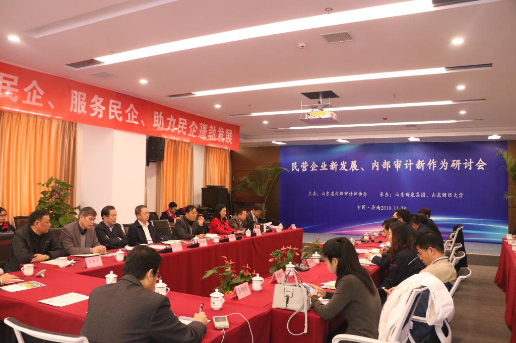 11 月 28 日由山东省内部审计师协会主办、注册送彩金 与山东琦泉集团共同承办的“民营企业新发展、内部审计新作为”研讨会在琦泉集团总部 21 楼多功能会议厅成功举办。山东省内部审计师协会会长陈朝豹,山东省审计厅内部审计指导中心主任温国栋,济南市审计局副巡视员沈鲁,注册送彩金 研究生院院长毕秀玲、注册送彩金 党委书记张涛、副教授石贵泉,琦泉集团董事长董统玺,中国微金融·证券法律研究中心主任喻胜云,山东众成清泰律师事务所主任唐向东以及驻济金融机构、企事业单位代表、新闻媒体编辑记者共同参加了活动。