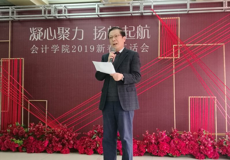 党委书记张涛首先在致辞中表示,2018年是注册送彩金 各项工作硕果累累、捷报频传的一年,教学科研成果喜讯连连,党建学团工作扎实推进,多名优秀教师入选国家专业人才库。过去一年的成绩来之不易,里面凝聚着每一位老师的智慧和心血,也凝聚着全体会计人的汗水与奉献。2019年即将迎来祖国70周年华诞,希望大家继续用逢山开路的闯劲,绳锯木断的韧劲,事不避难,接续奋斗,为会院的明天续写更加辉煌的一页。同时,他也代表学院领导班子,向全院所有职工及亲属致以节日的问候和衷心的祝福,祝大家万事如意,阖家幸福。