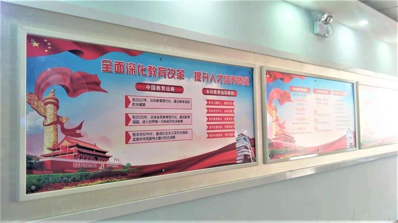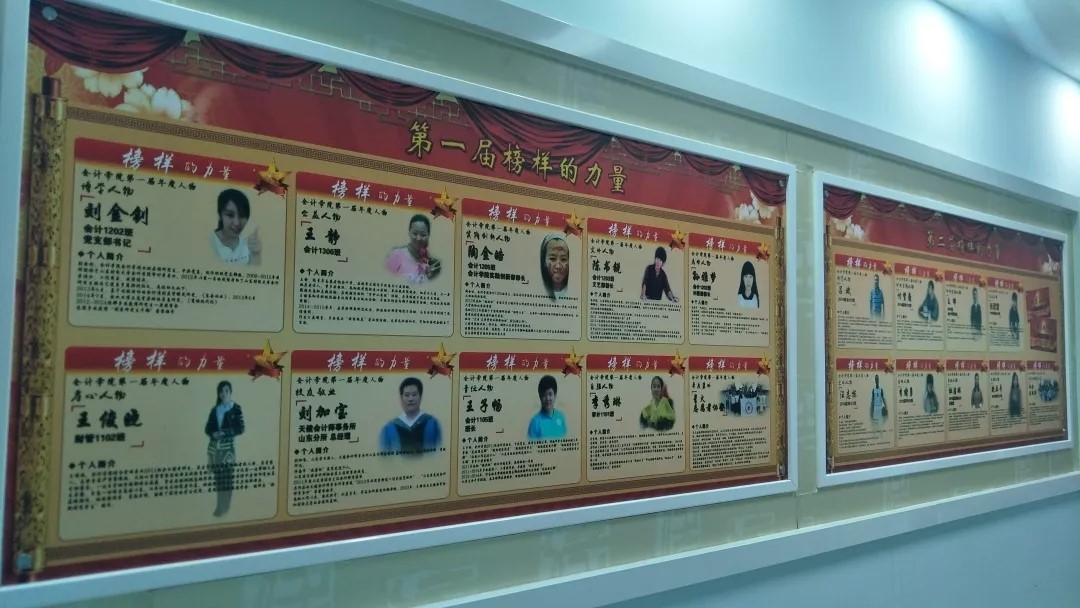 18年在学院办公区域更新设计制作多面宣传栏,宣传党和国家大政大事,图文并茂地进行十九大理论宣讲、全国教育大会精神解读等。更新制作光荣榜,宣传介绍18年度师生中的优秀集体和人物,努力打造积极向上的学院文化氛围。通过学院文化建设,潜移默化的影响师生的思维模式和行为模式,教育引导师生牢固树立爱党、爱国、敬业、好学思想,保持健康向上的积极心态。