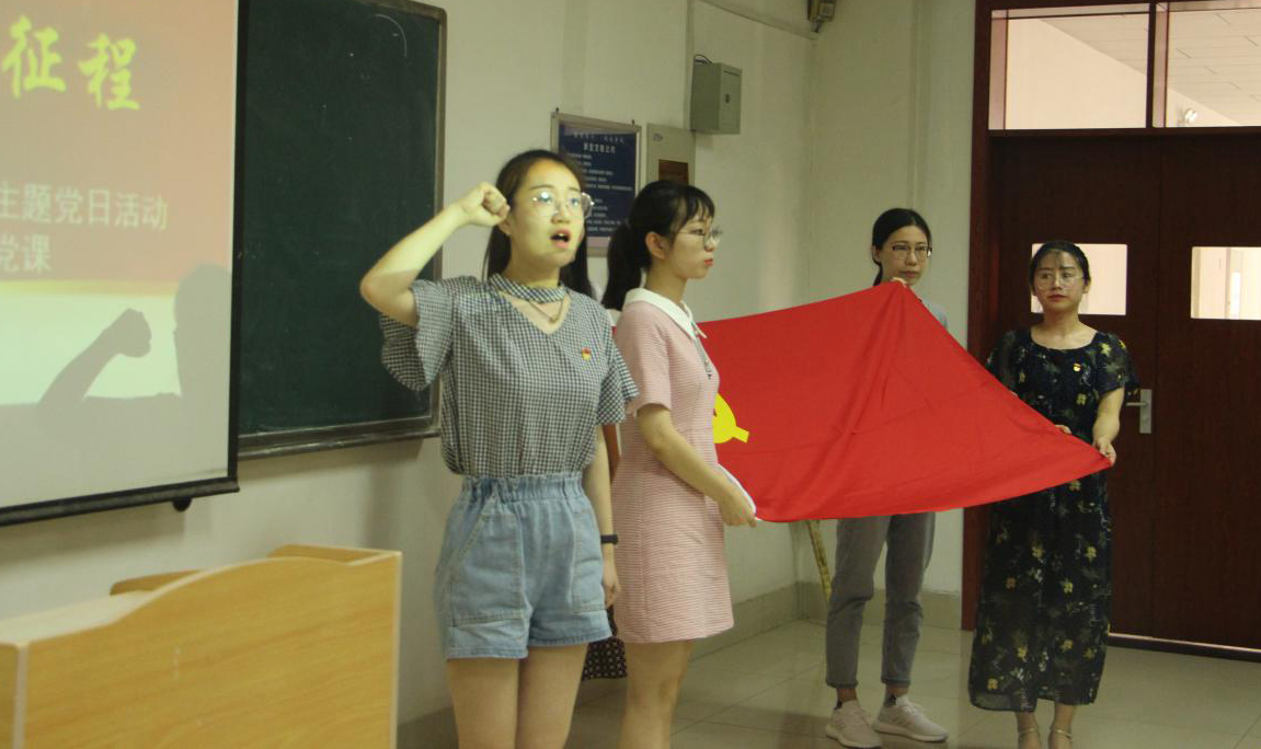 活动伊始,全体毕业生党员面向党旗,庄严宣誓,重温入党誓词。