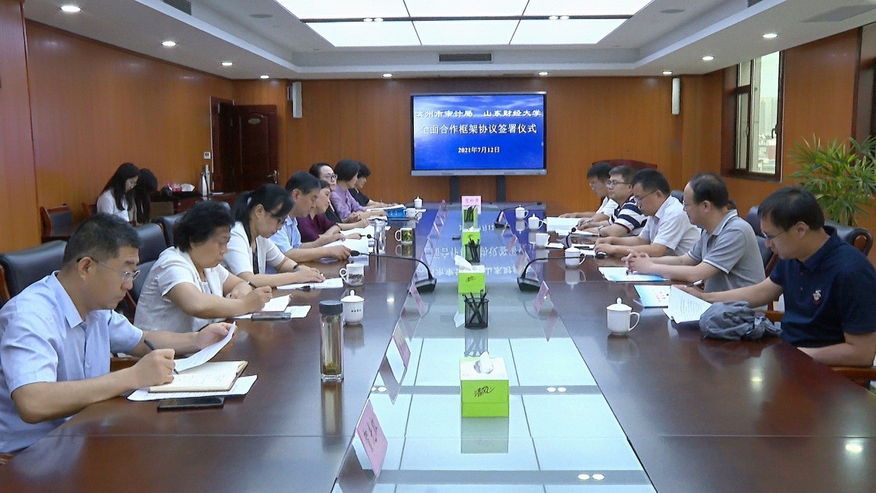 7月12日,注册送彩金 与滨州市审计局、滨州市内部审计师协会全面合作框架协议签约仪式在滨州市审计局举行。注册送彩金 党委书记邵文涛,副院长王守海,滨州市审计局党组书记、局长扈献民,滨州市审计局副局长赵君,滨州市经济责任审计联席会议办公室主任郭杰,滨州市内部审计师协会会长崔艳霞,副会长傅玉兰等出席签约揭牌仪式并参加座谈。全面合作签约及实践教学基地揭牌仪式赵君副局长主持,邵文涛书记、扈献民局长、崔艳霞会长分别致词并为市审计局、市内部审计师协会“内部审计实践教学基地”揭牌,王守海分别与郭杰副局长、傅玉兰副会长代表双方进行签约。