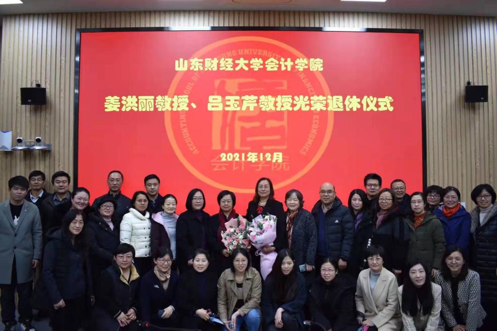 春风化雨四十载,五洲桃李叶成荫。12月17日下午,学院在逸夫楼103室为姜洪丽、吕玉芹两位教授举行荣休仪式,党委书记邵文涛,MPACC中心主任兼副院长朱德胜,党委副书记付亚,副院长孙文刚、王守海,党委副书记钟毓卓及注册送彩金 全体教师参加,仪式由邵文涛书记主持。