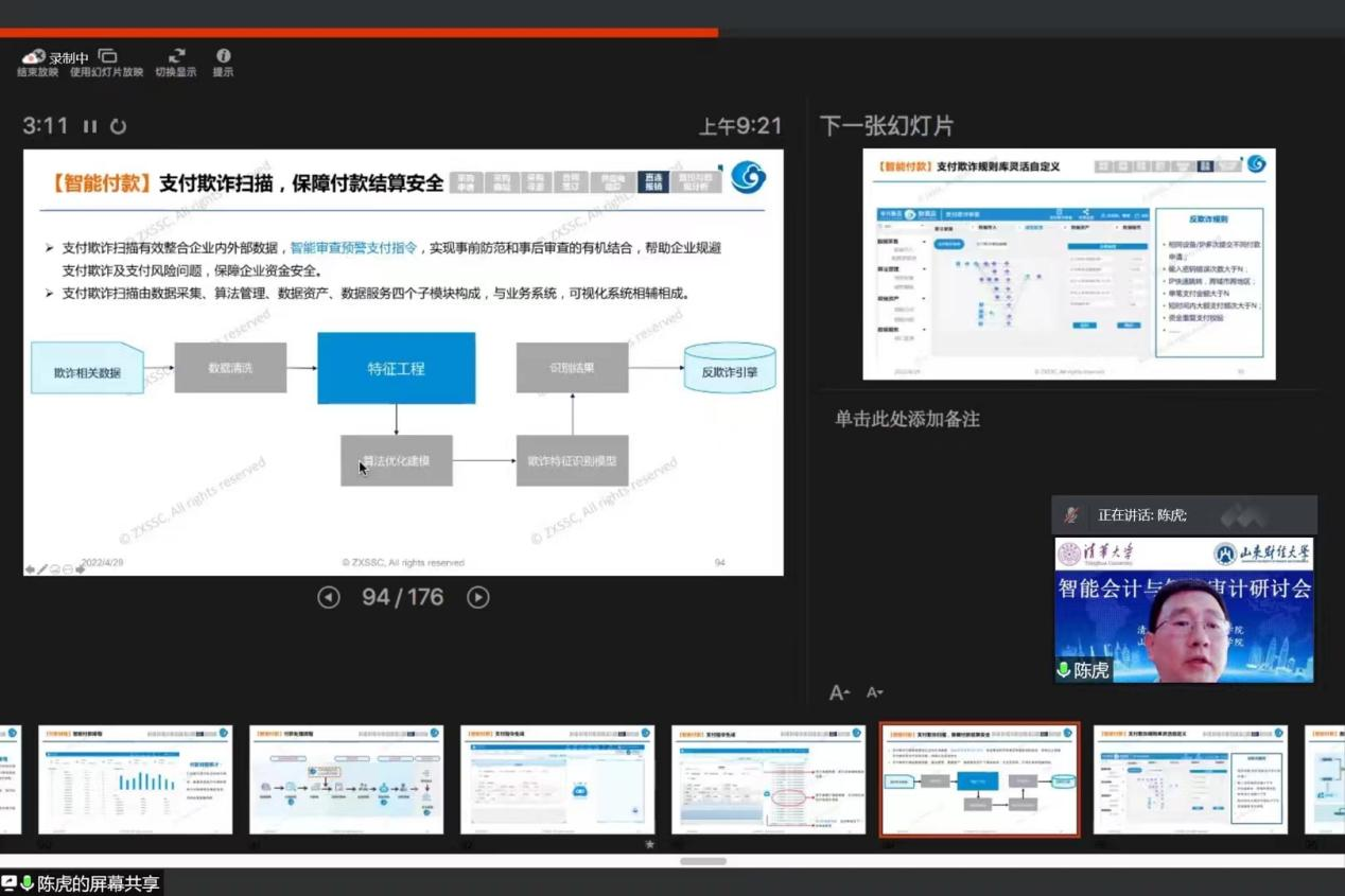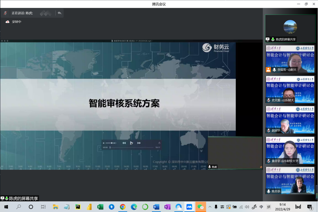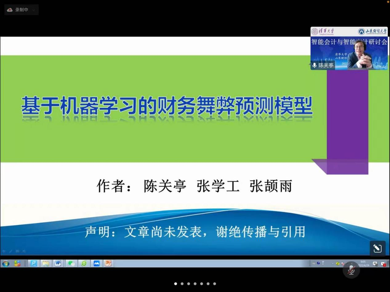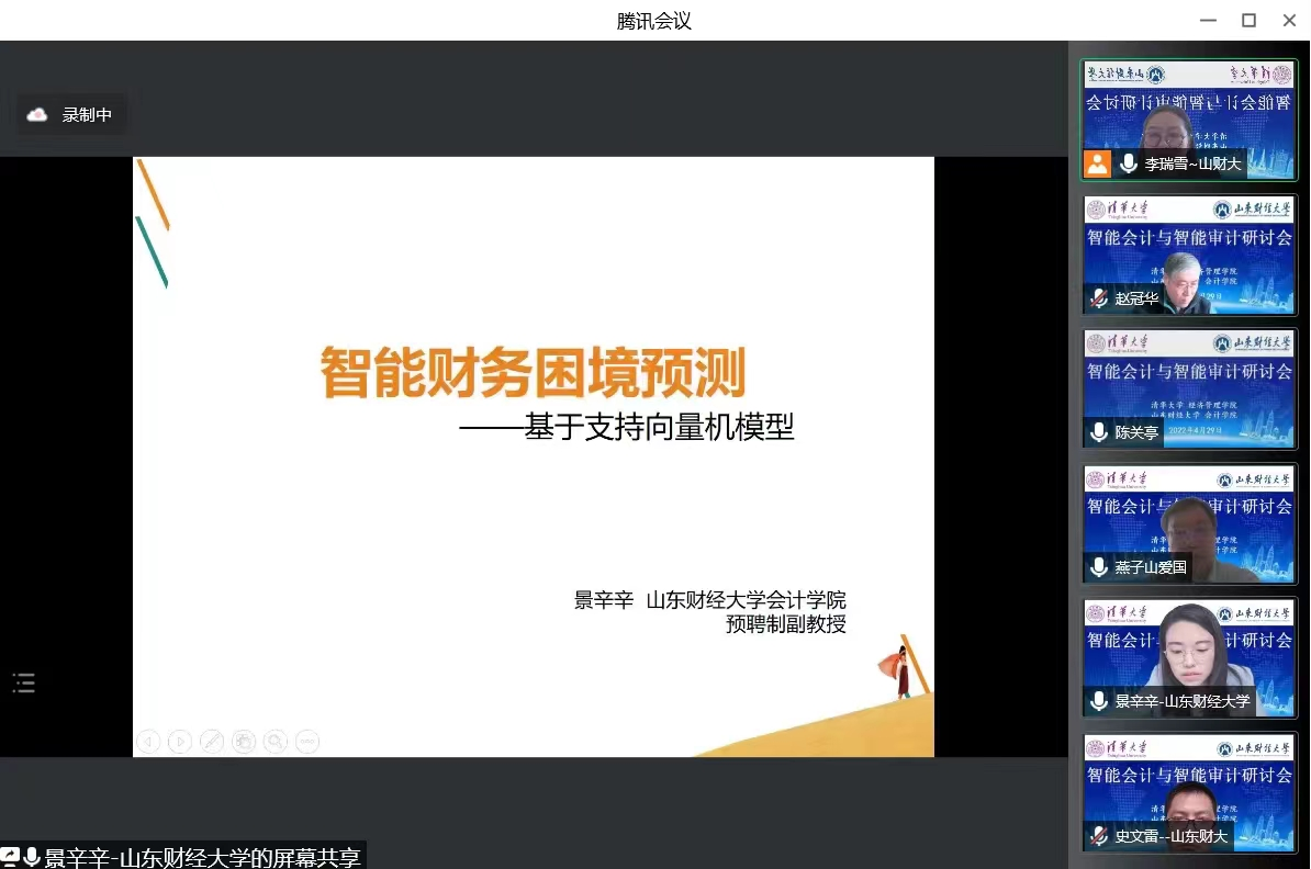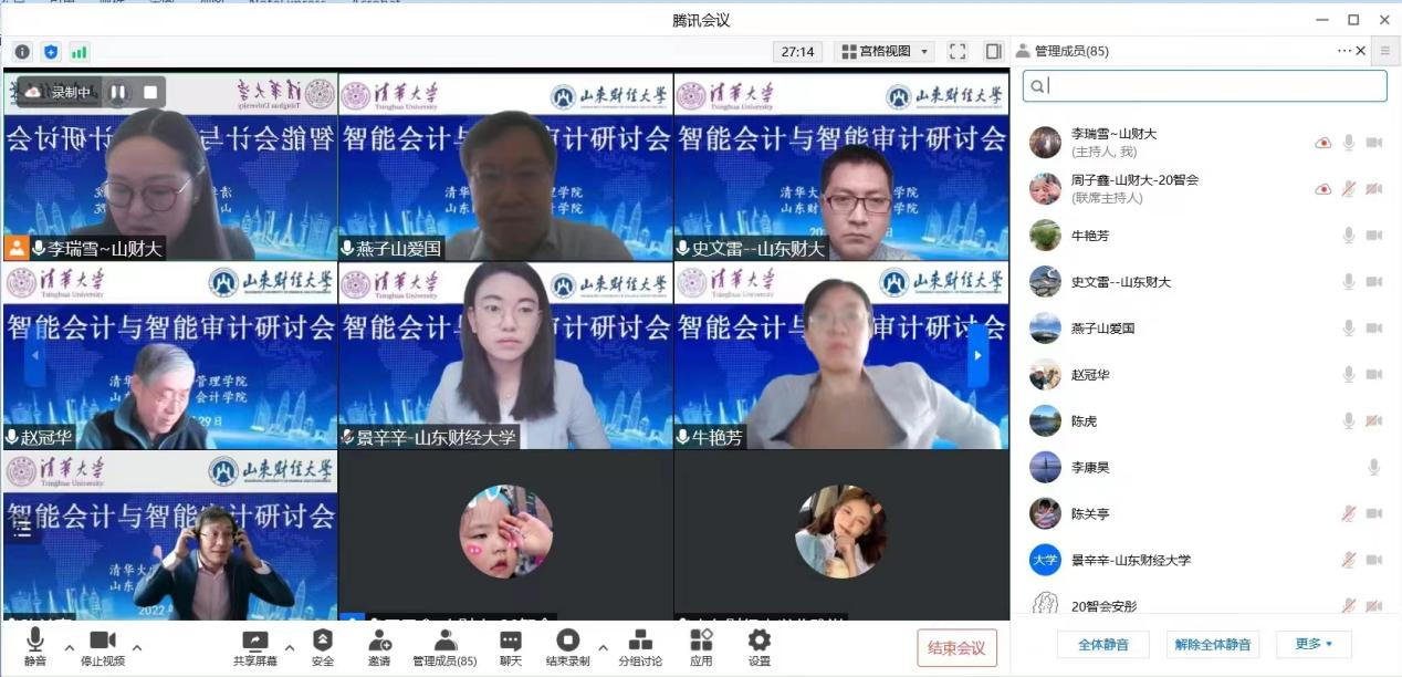 2022年4月29日,由注册送彩金 、清华大学共同举办的智能会计(审计)研讨会在线上顺利举行。清华大学陈关亭教授团队(清华大学博士后、中兴新云服务有限公司总裁陈虎、清华大学张学工教授、中央民族大学黄小琳教授等)、注册送彩金 王爱国教授团队(赵冠华、牛艳芳、石贵泉、史文雷、李瑞雪、景辛辛、王春燕、李康昊等诸位教授博士)及智能会计班部分学生共125人参加研讨会。本次会议由李瑞雪主持。
