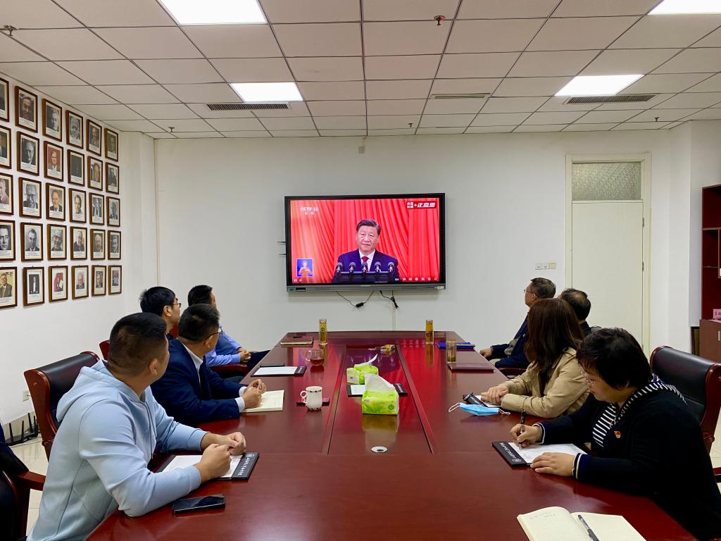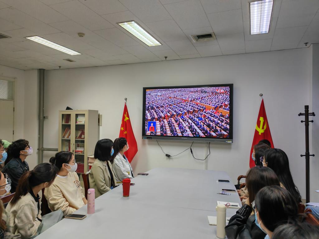 研究生第三党支部在燕山校区逸夫楼416教室集中收看收听开幕会盛况。