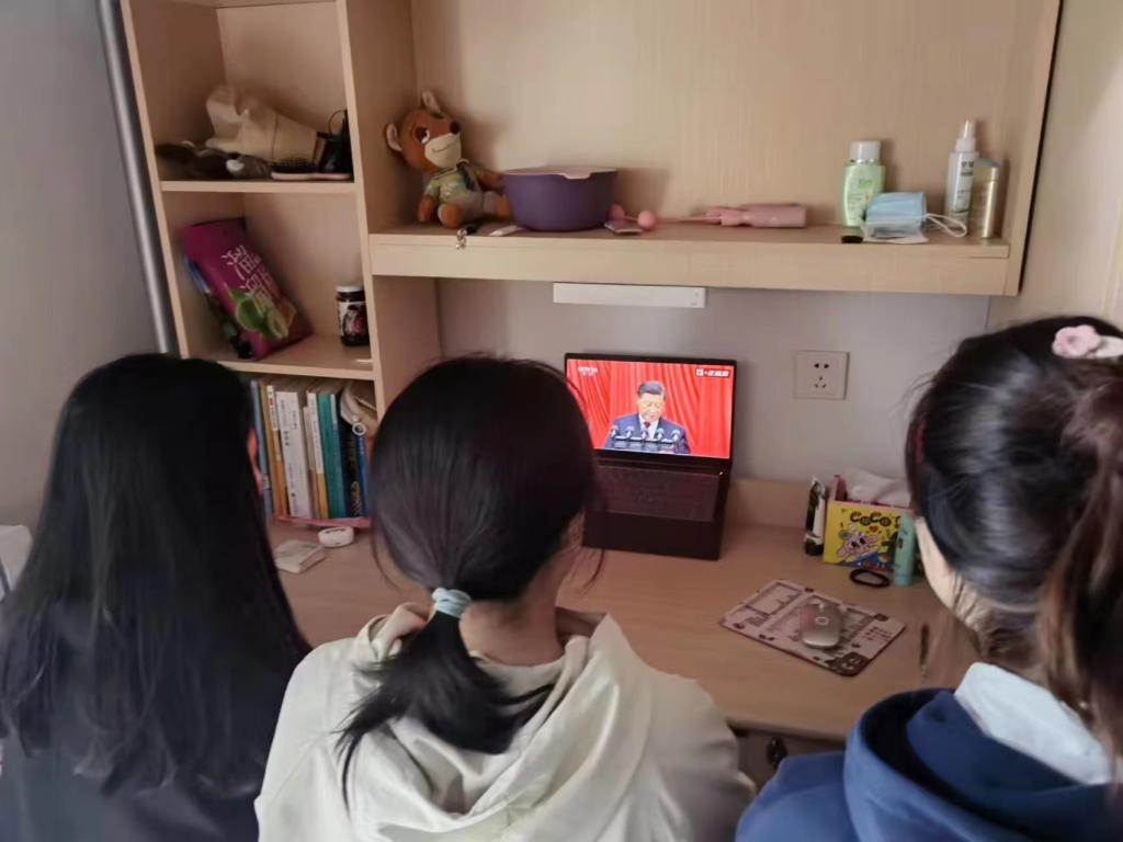 师生收听收看中国共产党第二十次全国代表大会开幕盛况
