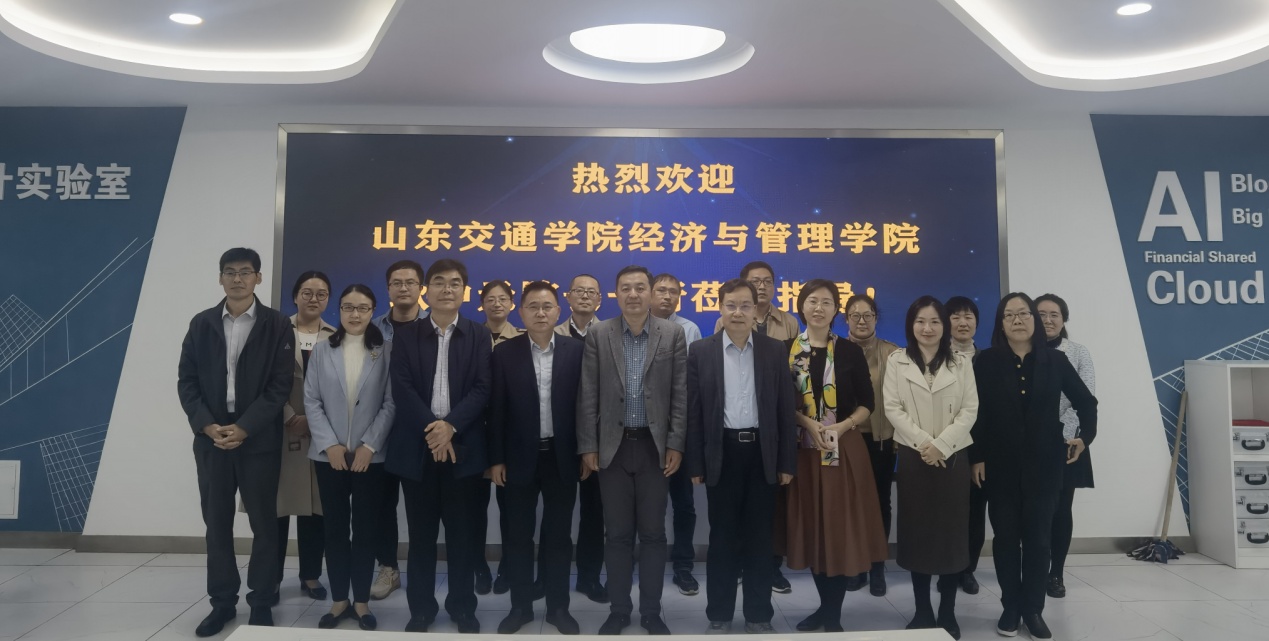 10月24日,山东交通学院经济与管理学院院长耿中元,副院长孙烨、聂云霞、张蕾一行八人来访注册送彩金 。注册送彩金 学党委书记邵文涛,院长葛永波,智能会计与数字企业研究院院长王爱国等出席交流活动。双方就数字经济时代人才培养模式改革、智能会计人才培养体系建设、实践教学开展等方面进行了深入交流,并参观了燕山校区智能会计实验室。