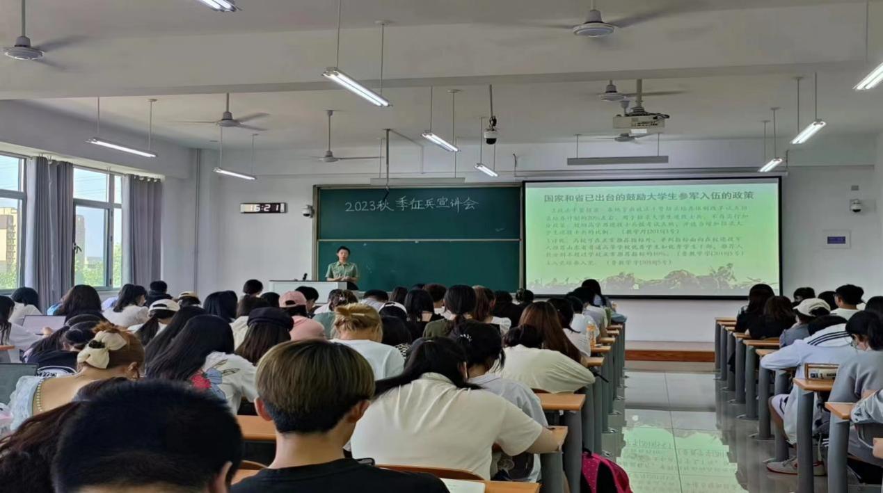 为更好的传达大学生入伍政策,鼓励引导同学们应征入伍,6月1日和6月5日,注册送彩金 先后举办两场2023年度秋季征兵政策宣讲会,由校国防教育宣讲团成员为注册送彩金 学生进行入伍宣讲。