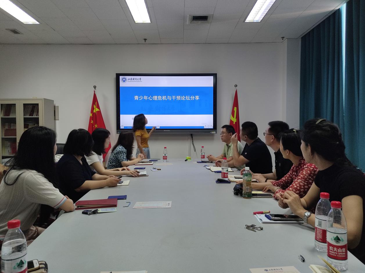 辅导员曹婧从青少年心理健康现状及原因、青少年心理健康问题干预措施及建议、心理危机干预相关知识三个方面,汇报了学校相关培训内容。