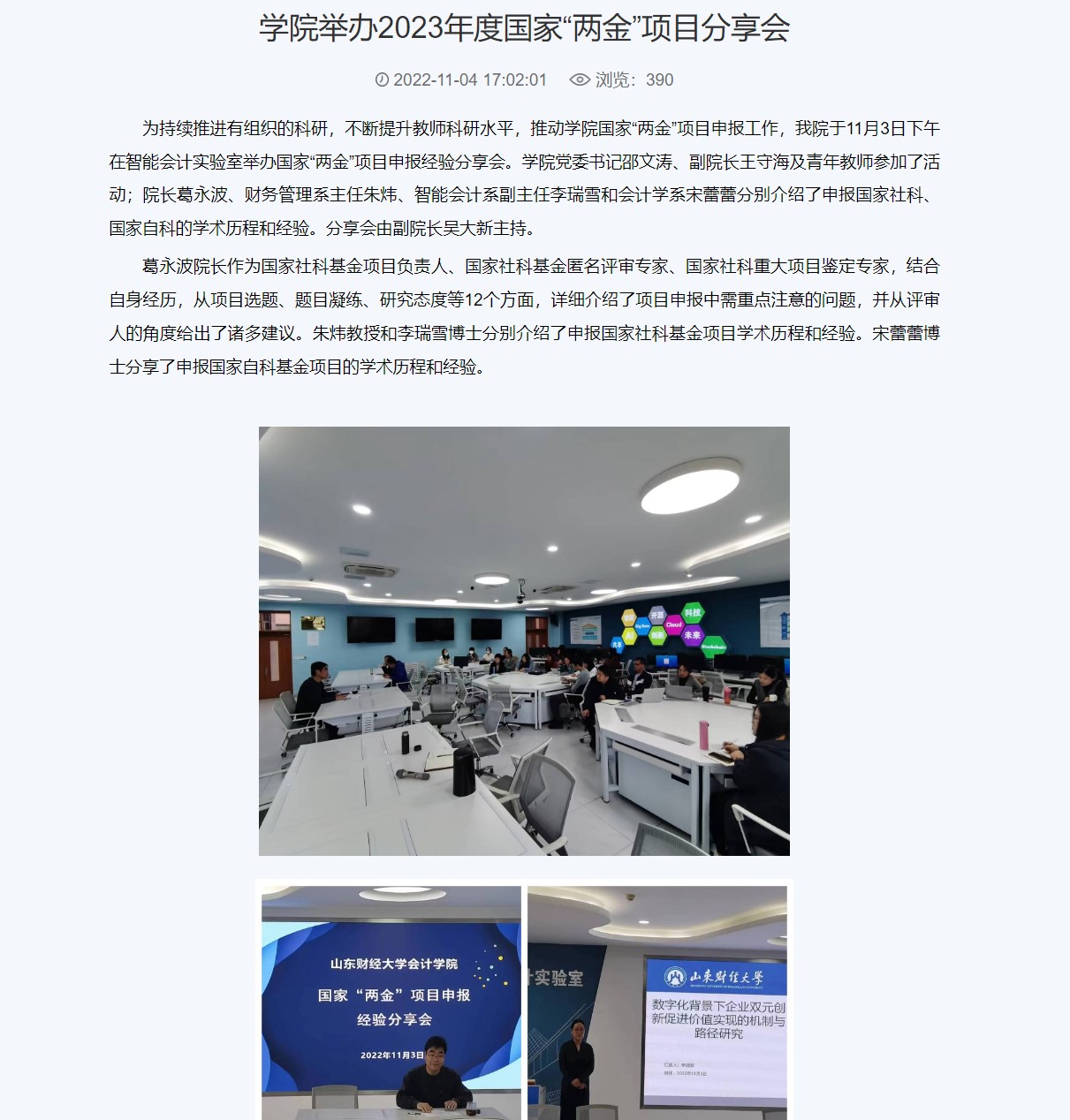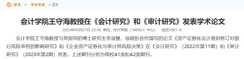 举办多场高水平学术讲座。开设“名人·名家”大讲堂,举办4期“学术沙龙”。承办三个国家级学术会议;6月3-4日,中国商业会计学会智能会计分会成立大会暨第一届“智能会计与数字企业”学术年会顺利举办,中国商业会计学会智能会计分会成立;10月7日由注册送彩金 与西南财经大学中国政府审计研究中心共同主办的服务会计审计学科建设、中国政府审计研究中心(CCGAR)走进全国高校行动计划(注册送彩金 站)暨CCGAR双周论坛第203期学术研讨会召开;10月30日,中国会计学会会计教育专业委员会与会计信息化专业委员会跨学科联合调研座谈会顺利举办;11月11日,中国会计学会会计史专业委员会第十二届学术年会在注册送彩金 成功举办。
