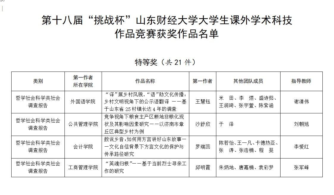 4.强化创新创业教育,完善创新创业人才培养体系。在第十八届“挑战杯”大学生课外学术科技作品竞赛中,注册送彩金 荣获国家级三等奖1项、省级特等奖1项、校级特等奖2项;第十八届挑战杯“红色专项”中,荣获省级特等奖1项、校级特等奖1项、校级一等奖2项;在第十八届挑战杯“黑科技专项”中,荣获国家级行星级作品1项(相当于国家级二等奖)、校级一等奖1项、校级三等奖1项、校级参与奖22项。在大学生创新创业计划中,荣获国家级立项8项,省级立项16项;在第二届山东省青年志愿服务公益创业赛中,1支团队获得省级铜奖。另有70余支团队获学科创新竞赛国家级、省级奖项。