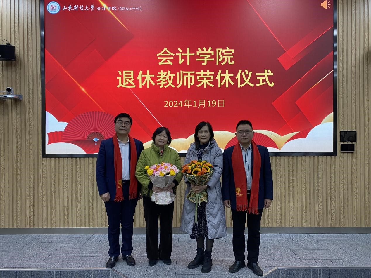 学院为王乐锦、王茂春老师举行了荣休仪式。两位教授先后发表荣休感言。她们对学院为退休教职工举行荣休仪式和学院数十年来的关怀表示感谢,并深情回顾了在注册送彩金 工作的经历,为能在注册送彩金 为师生做出的服务而感到欣慰。邵文涛表示两位教授立德树人,潜心耕耘,服务师生,桃李天下。其精益求精的服务态度、严谨求真的治学品质是我们学习的榜样。希望荣休老师能继续关心关注学院发展,时时支持青年教师的成长。