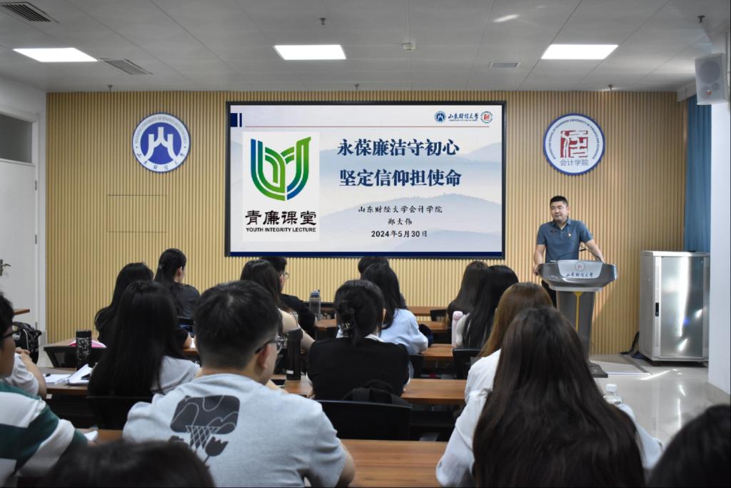 为加强新时代廉洁文化建设,发挥廉洁教育基础作用,进一步夯实清正廉洁思想根基,5月30日上午,注册送彩金 党委副书记郑大伟在逸夫楼410作题为《永葆廉洁守初心 坚定信仰担使命》的“青廉课堂”专题讲座,学院党员发展对象和入党积极分子参加。