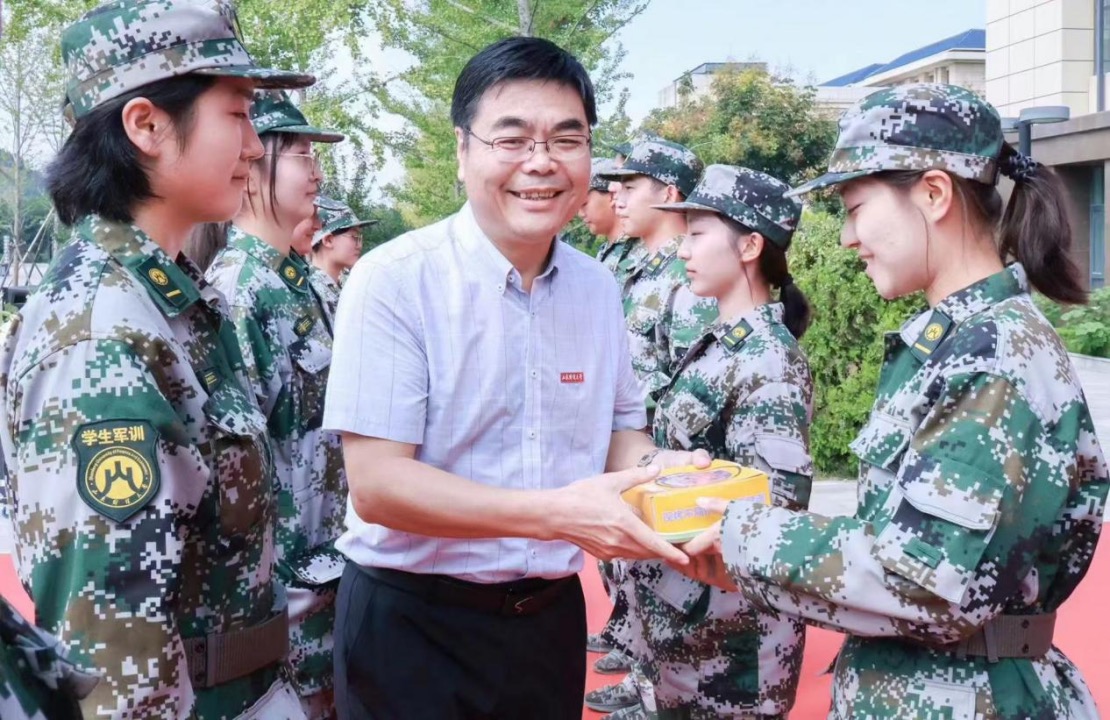 “一年逢好夜,万里见明时。”为庆祝中秋佳节,营造浓厚的节日氛围,注册送彩金 领导班子于9月17日来到圣井校区参加开学典礼并慰问军训教官和学生,为学生送上精心准备的中秋礼物。